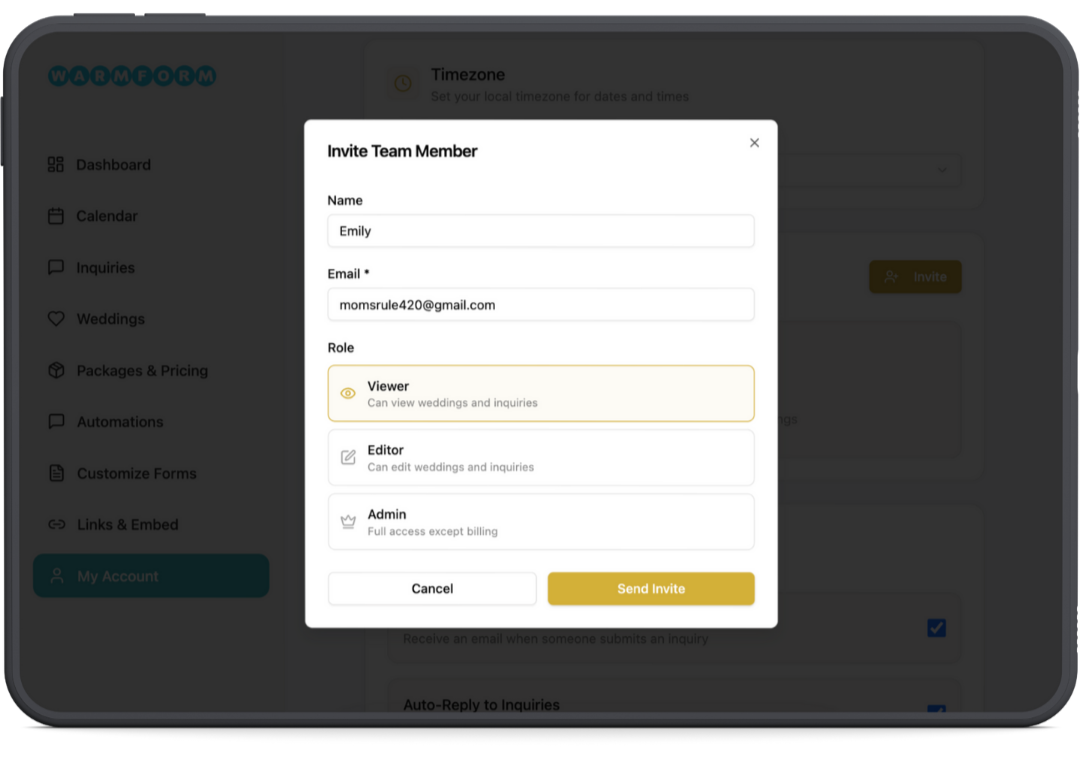 streamline your wedding workflow and get started with warmform today, no credit card needed: