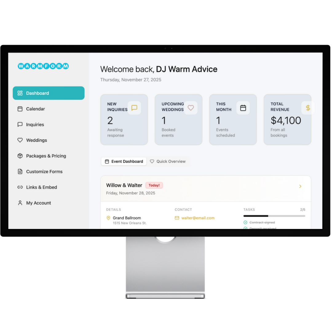 stop juggling dms, emails, random google forms, paper contracts, and endless text threads. warmform brings all of it into one warm, beautifully organized workspace.