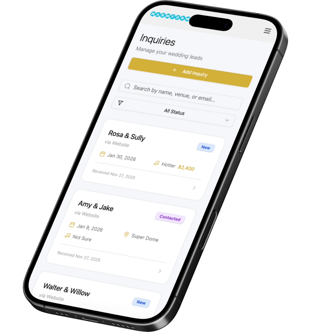 capture, organize, and track every inquiry from the moment it lands in your inbox. custom inquiry forms feed directly into your pipeline, where you can see exactly which leads are new, warm, or ready to book.